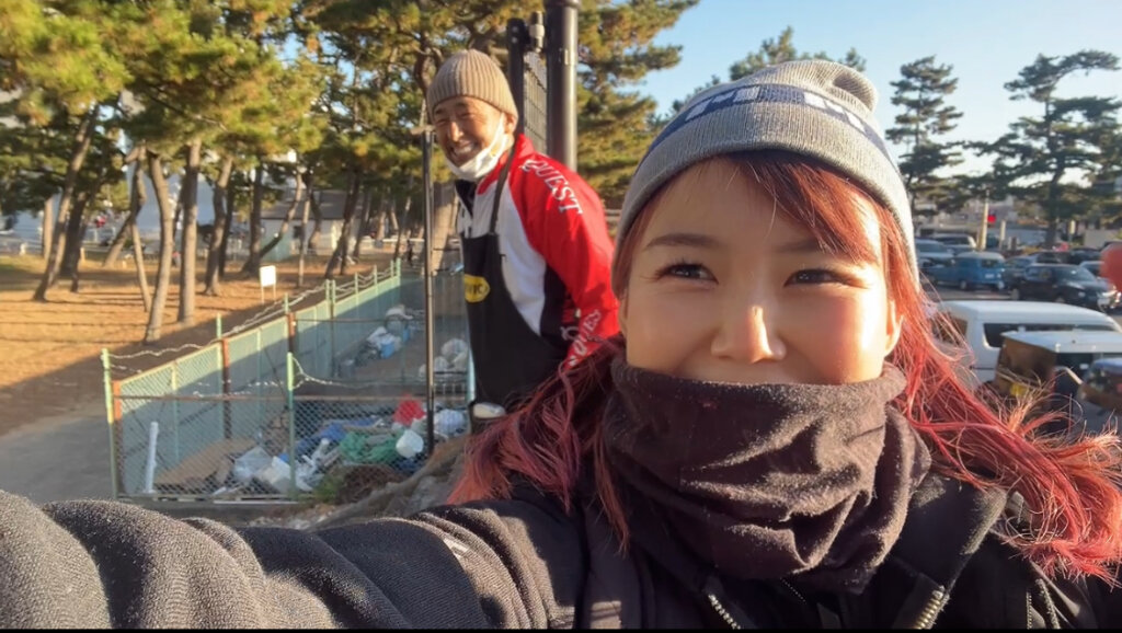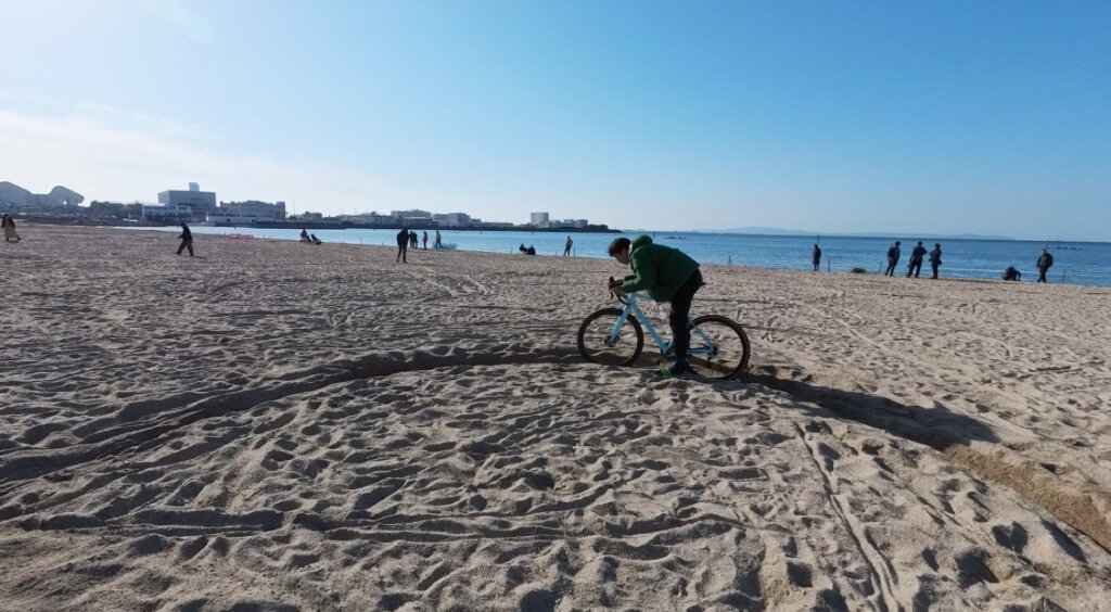 途中、砂浜に埋まっていたらいと君に遭遇。