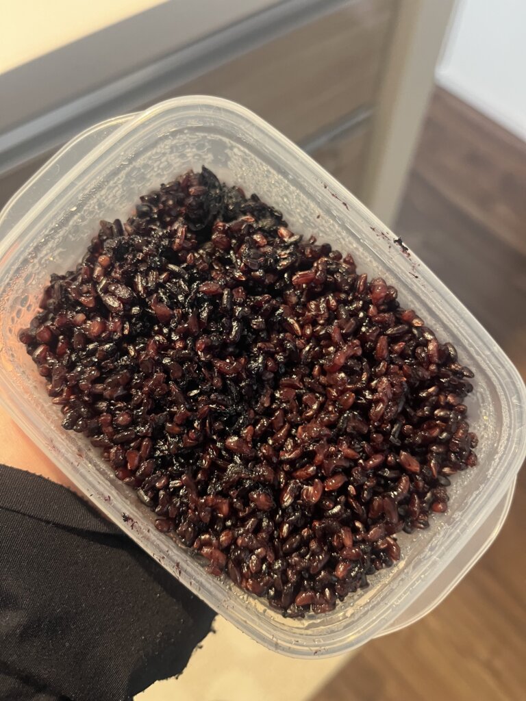 ちょっと味見してみたら、赤米だけよりも濃くて香ばしい!もちもちしている👀