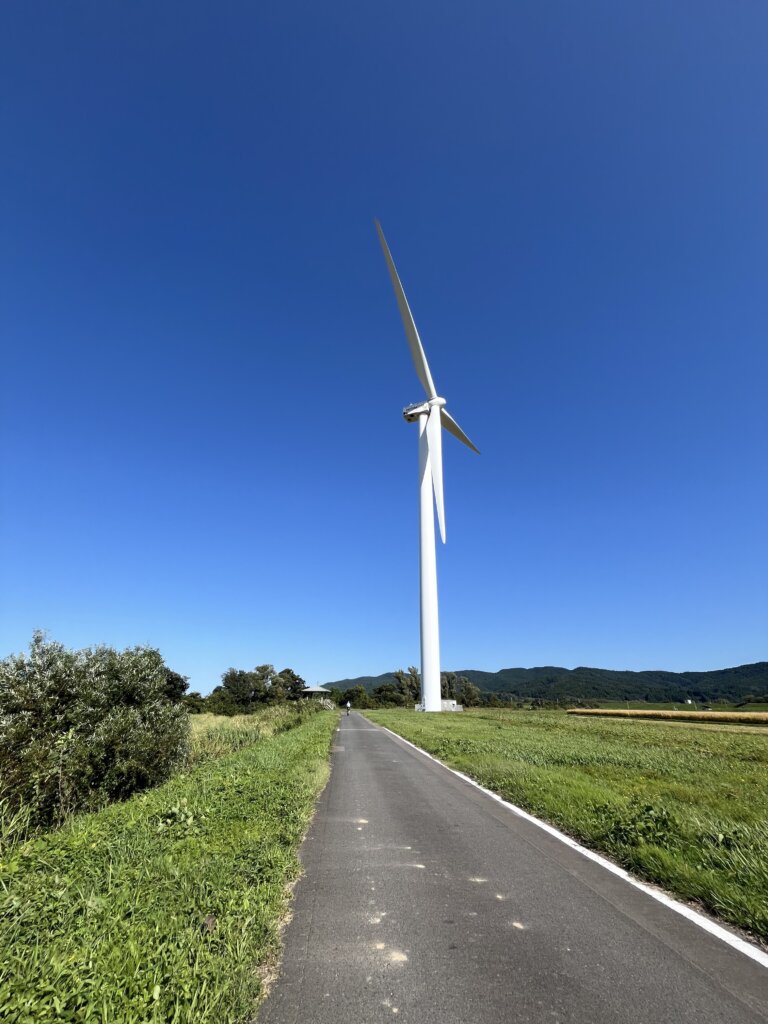 ここから先、目の前の風車を見ながら「道の駅しょうない」まで約30km走る。