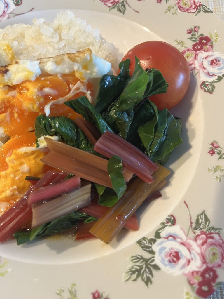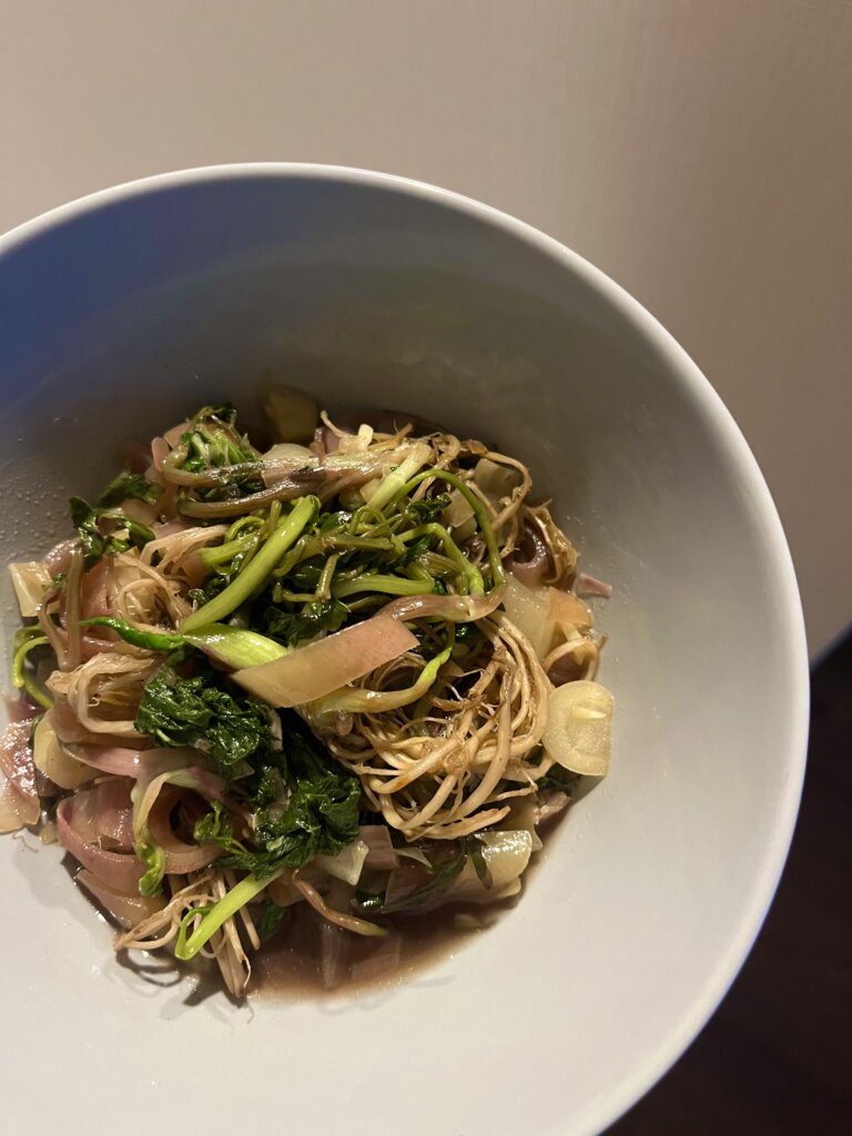 ミョウガ、大葉、せり、梅干し、酢、ごま油、梅酢でささっと炒めて完成。