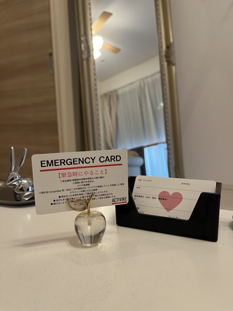 こちらも、サイクリストさんたちにどうぞお渡ししてね、ということで、ACTIVIKEのEmergency Cardをいただいた。紙もツルツルしているので、汚れにくそう!