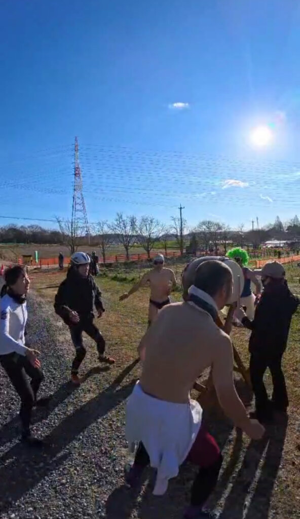 このあとレースなのに、みな達成感(疲労感?)でいっぱいだった。